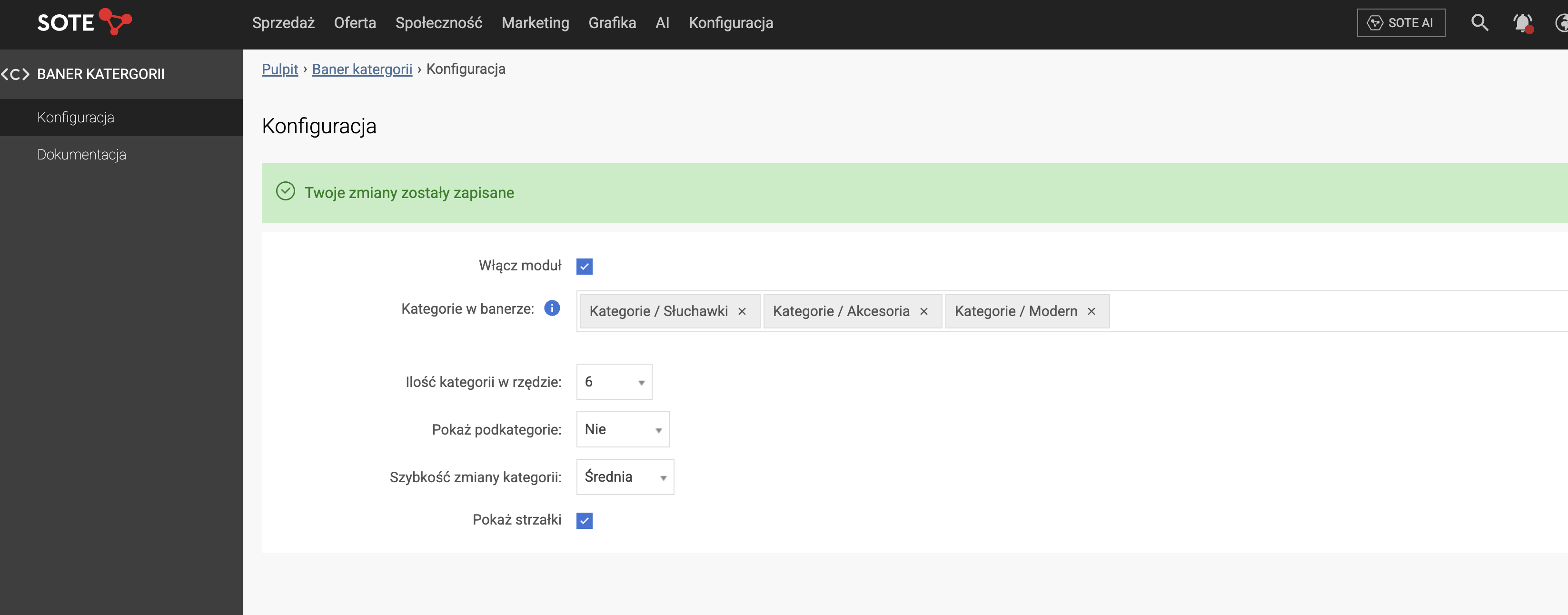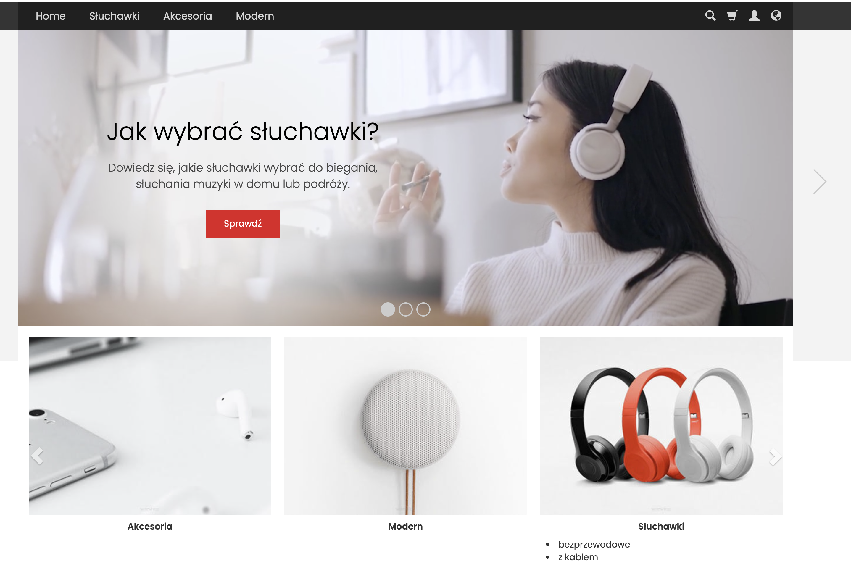 The Application allows you to create an independent list of categories on the home page under the banner. If more than six categories are created, they will automatically scroll or you can use arrows to move between them.
