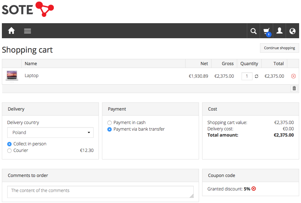 In the store panel you can generate discount codes that customers can use to get a discount. Discounts can be assigned to an order, selected products or generated when the order status changes. You can define the usage limit, expiration date and set the order value threshold. Additionally, you can define the rules for assigning and summing up discounts.